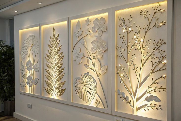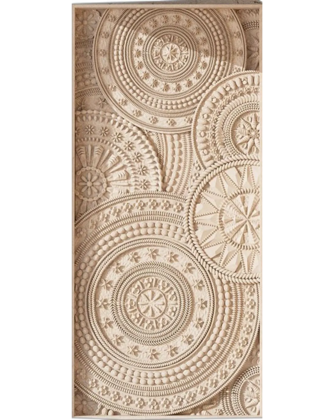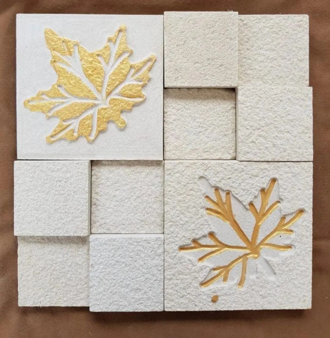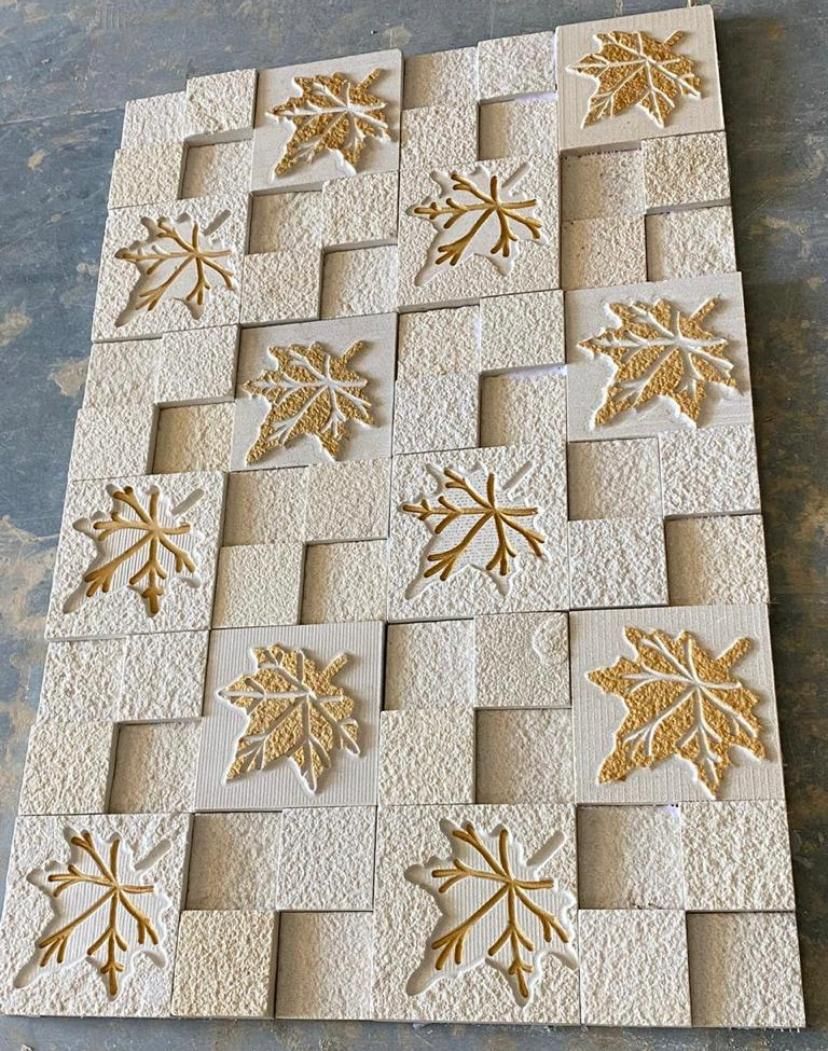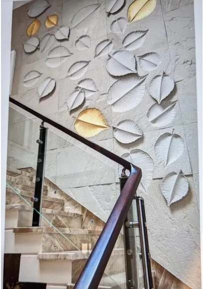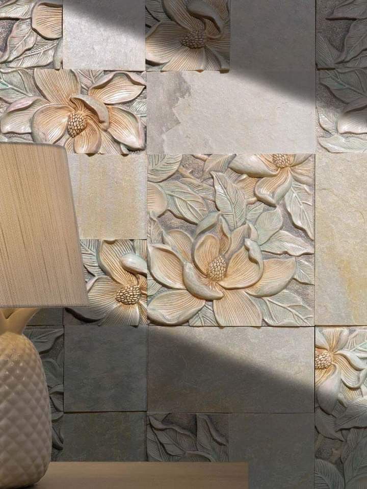 Artistic 3D carved stone panels featuring floral, geometric and spiritual designs.