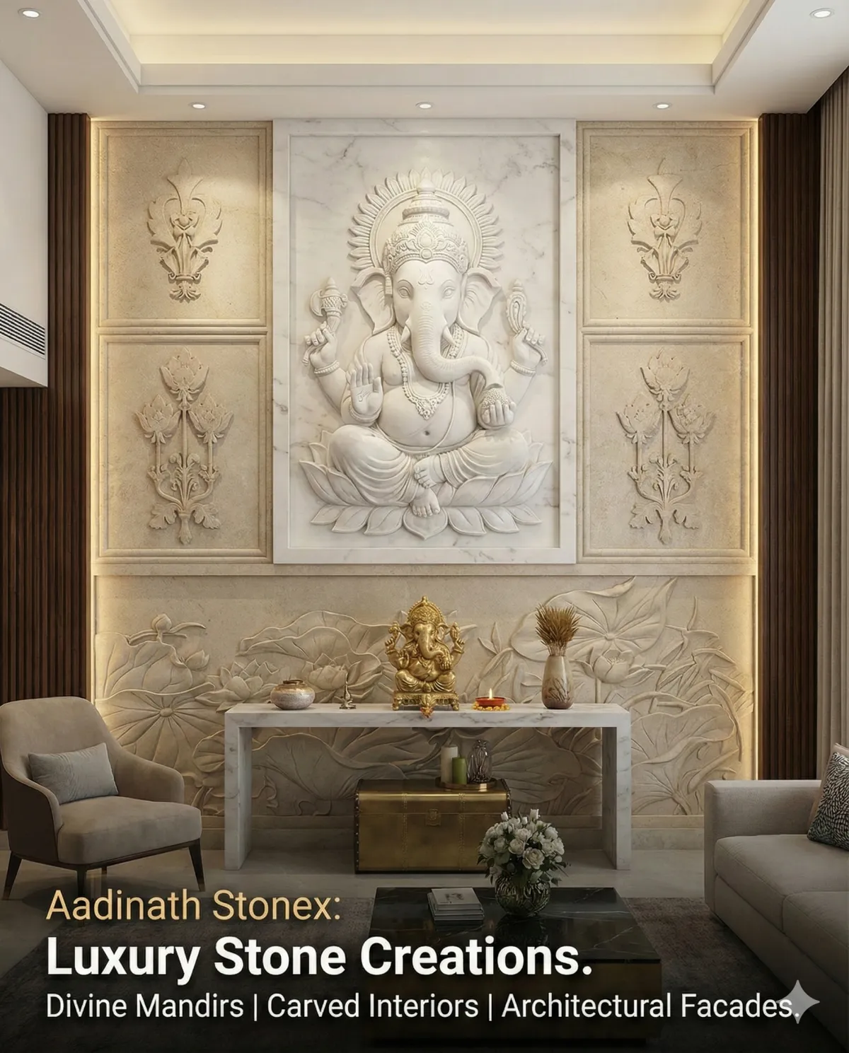 A carefully curated catalogue of premium stone finishes, CNC work and bespoke architectural details by Aadinath Stonex.